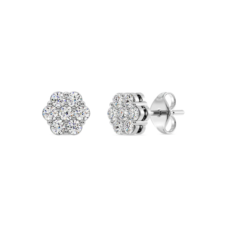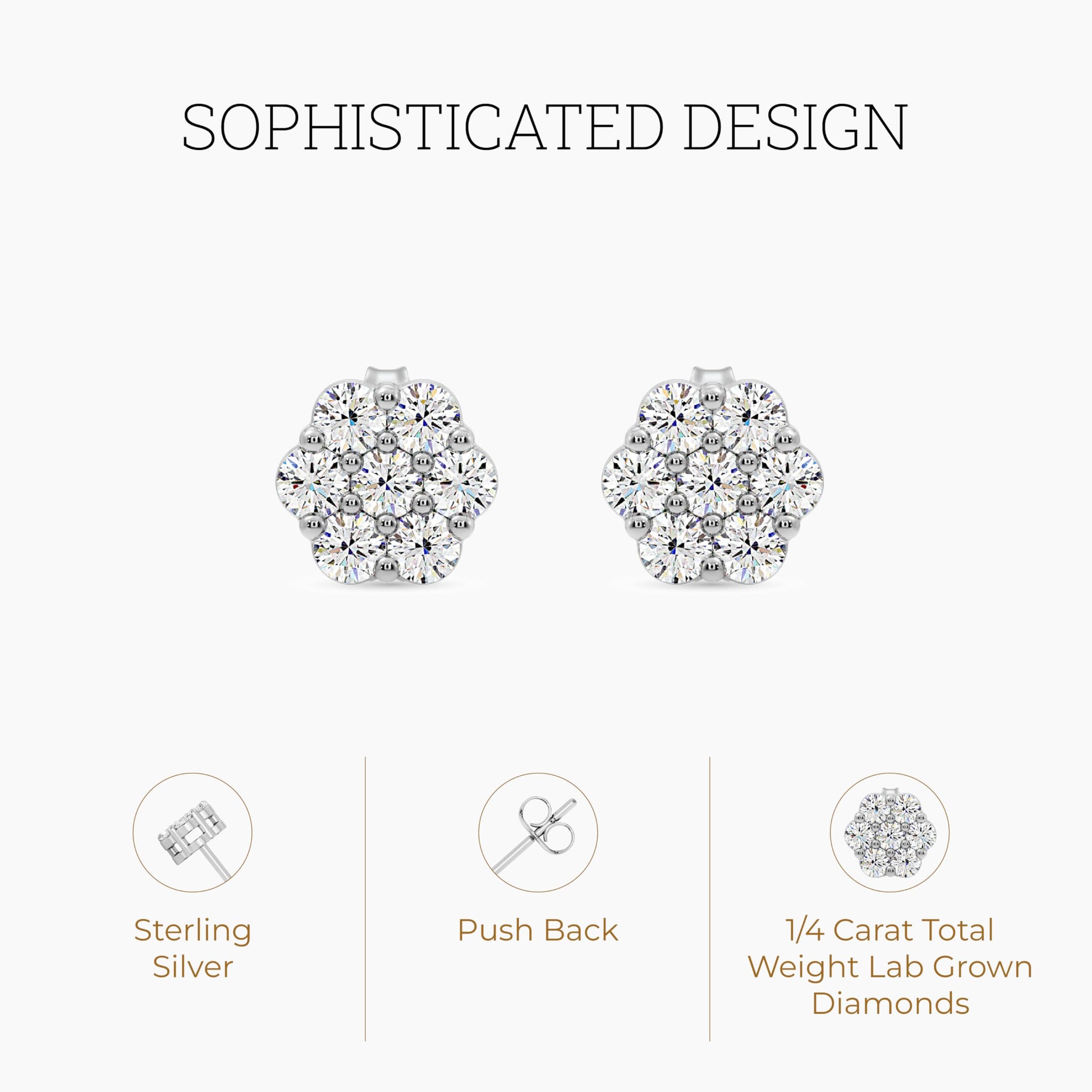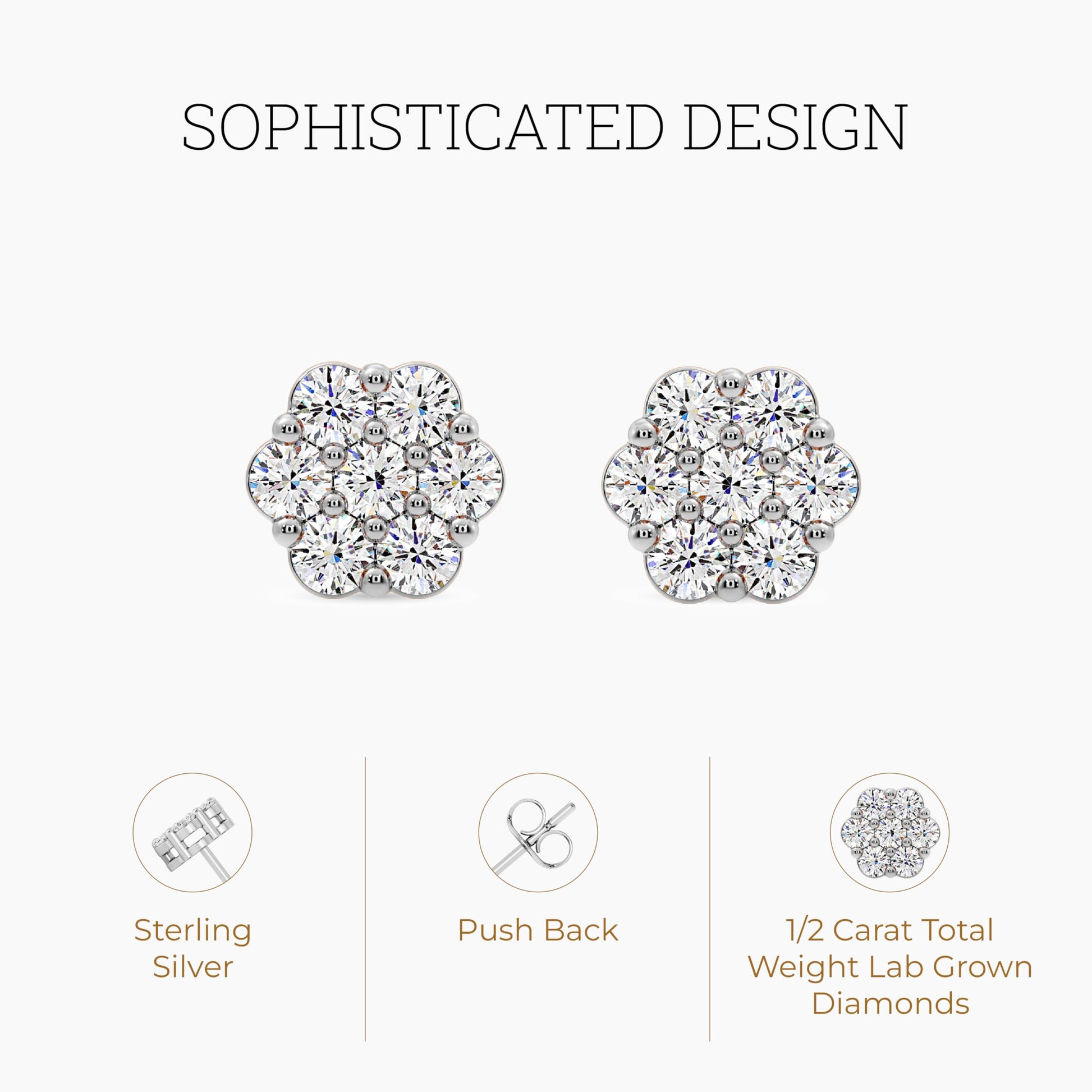 Gilded Lab-Grown Diamond 7 Stone Flower Earrings for Women in 925 Sterling Silver and 14KT Yellow Gold Plated Silver | Hypoallergenic Fine Jewelry | Hinged Closure | SI1 Clarity, F Color |1/4,1/2, 1,2 Carat Total Weight