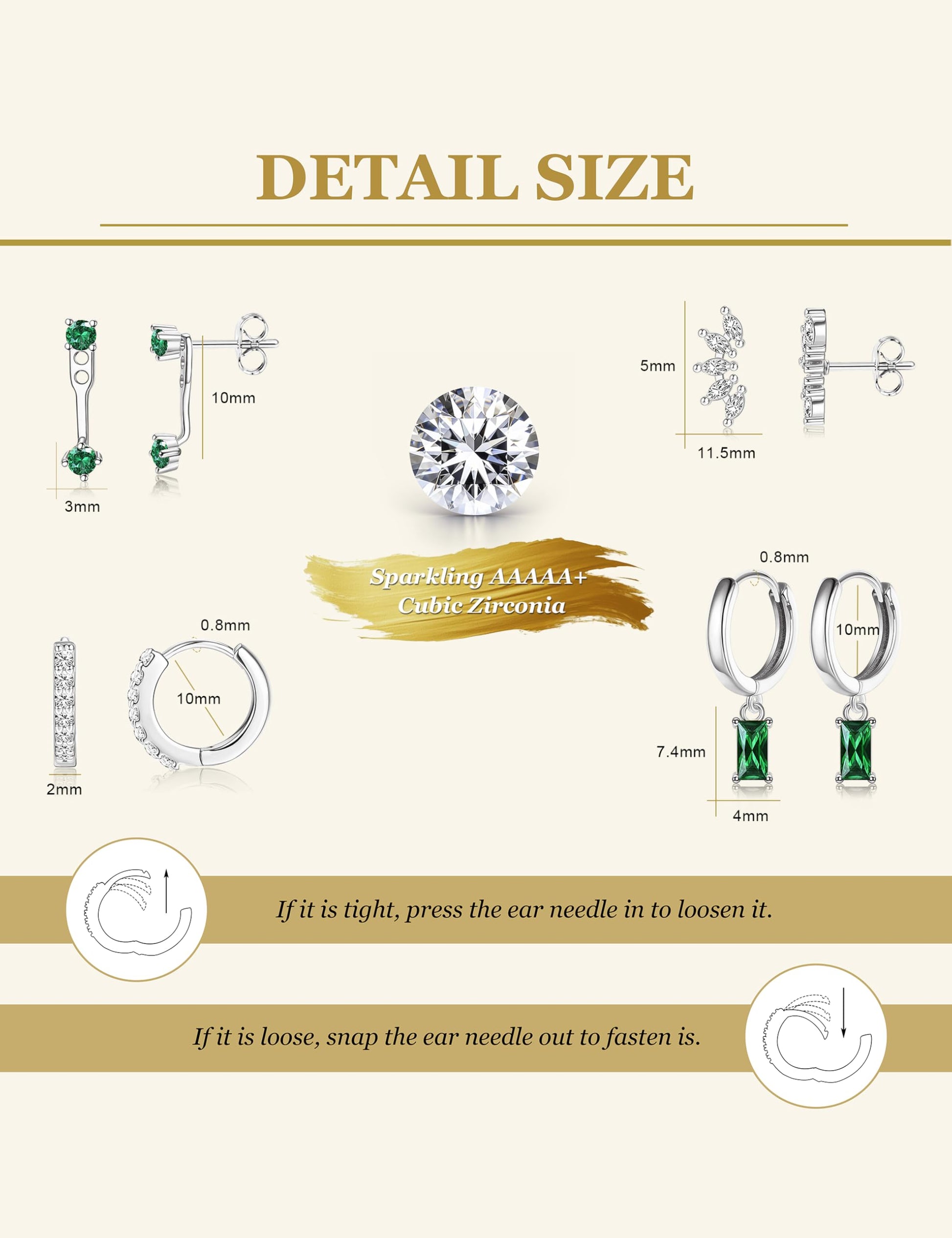 - Size and Package--The Cartilage Earring Stacks inner diameter: 10mm, the ear post thickness:18G-20G(0.8mm-1mm).The ear jacket style is designed with three adjustable holes, and it can be worn on both thin and thick earlobes. Unique earrings sets are packaged in a exquisite jewelry box, perfect for storage and gifting
