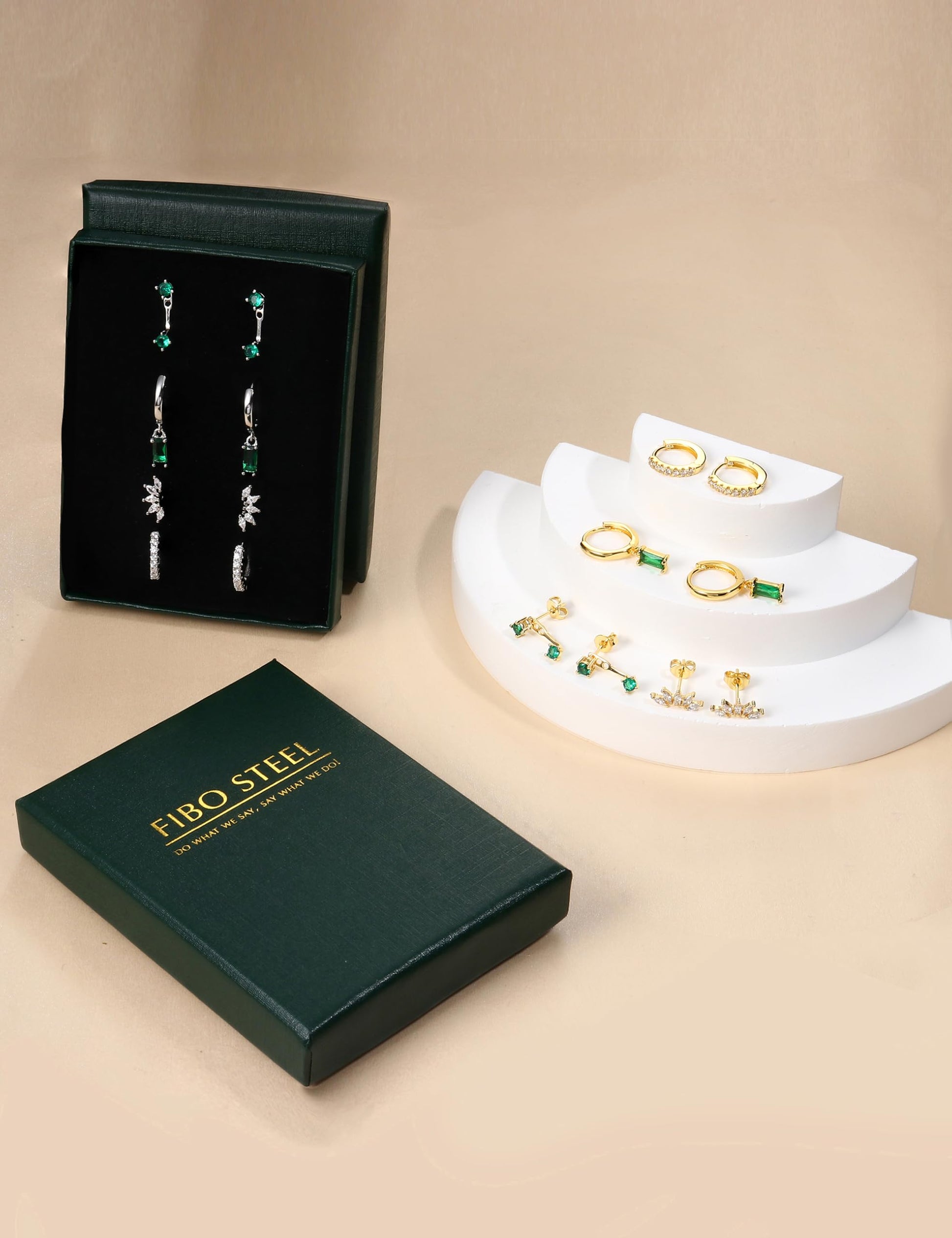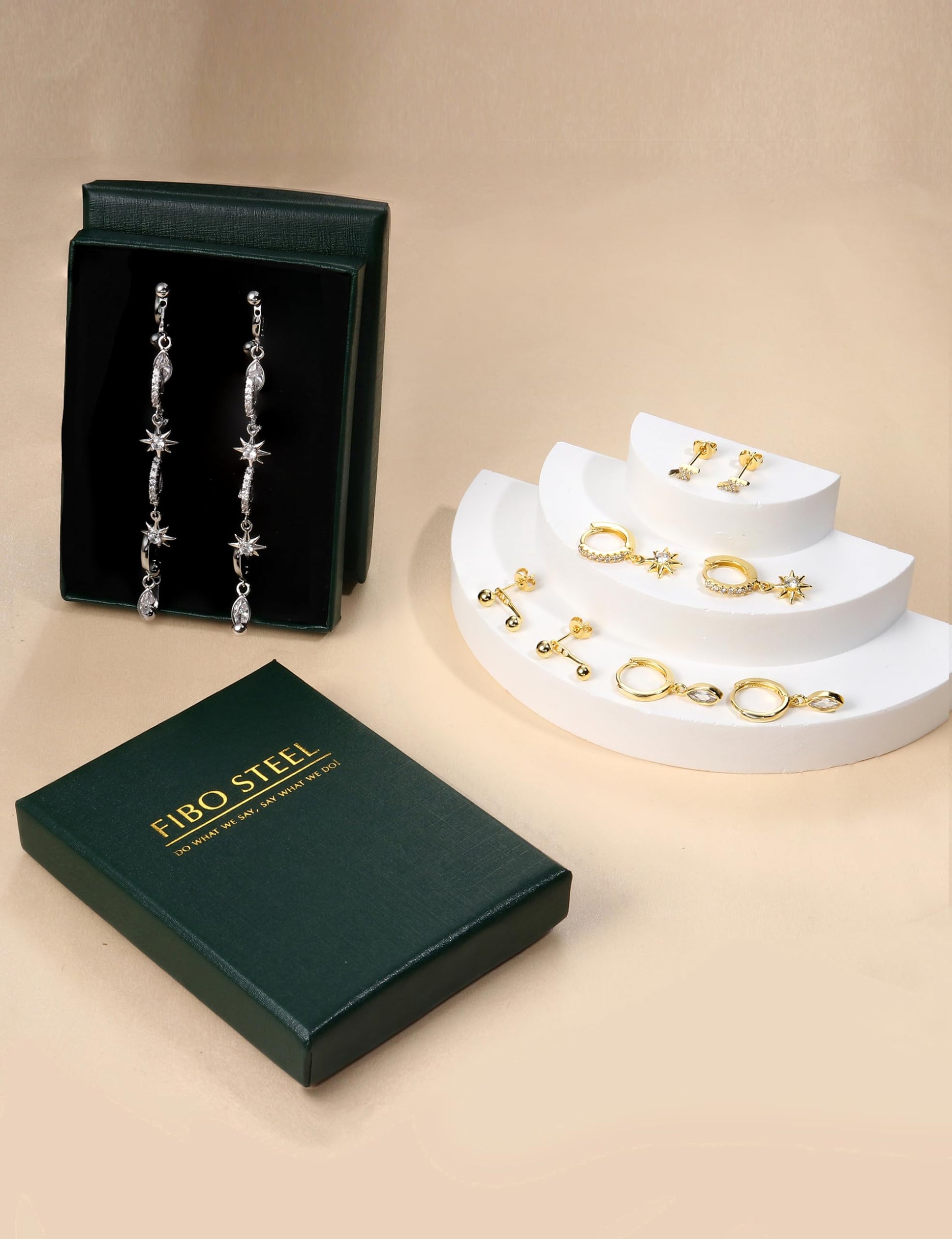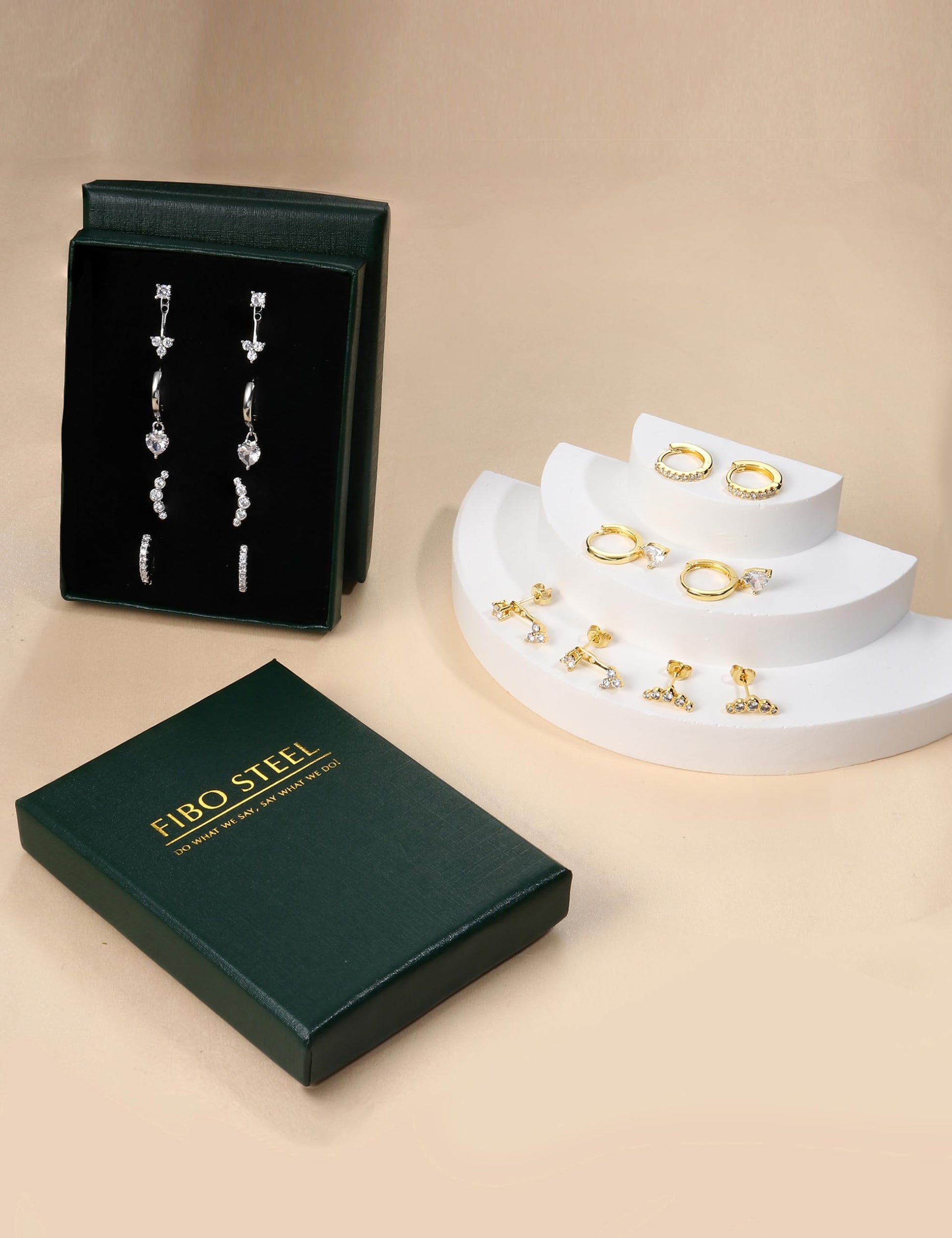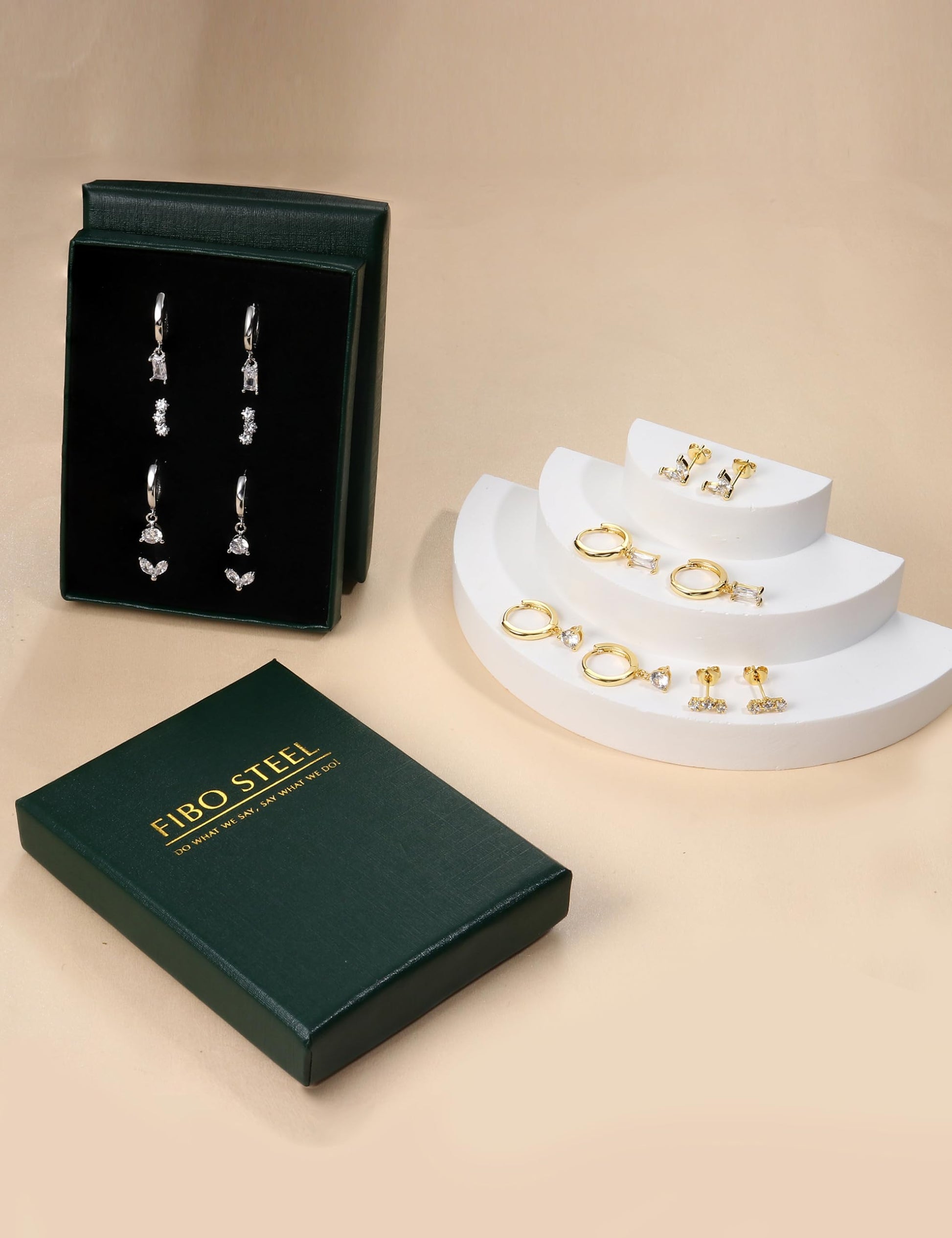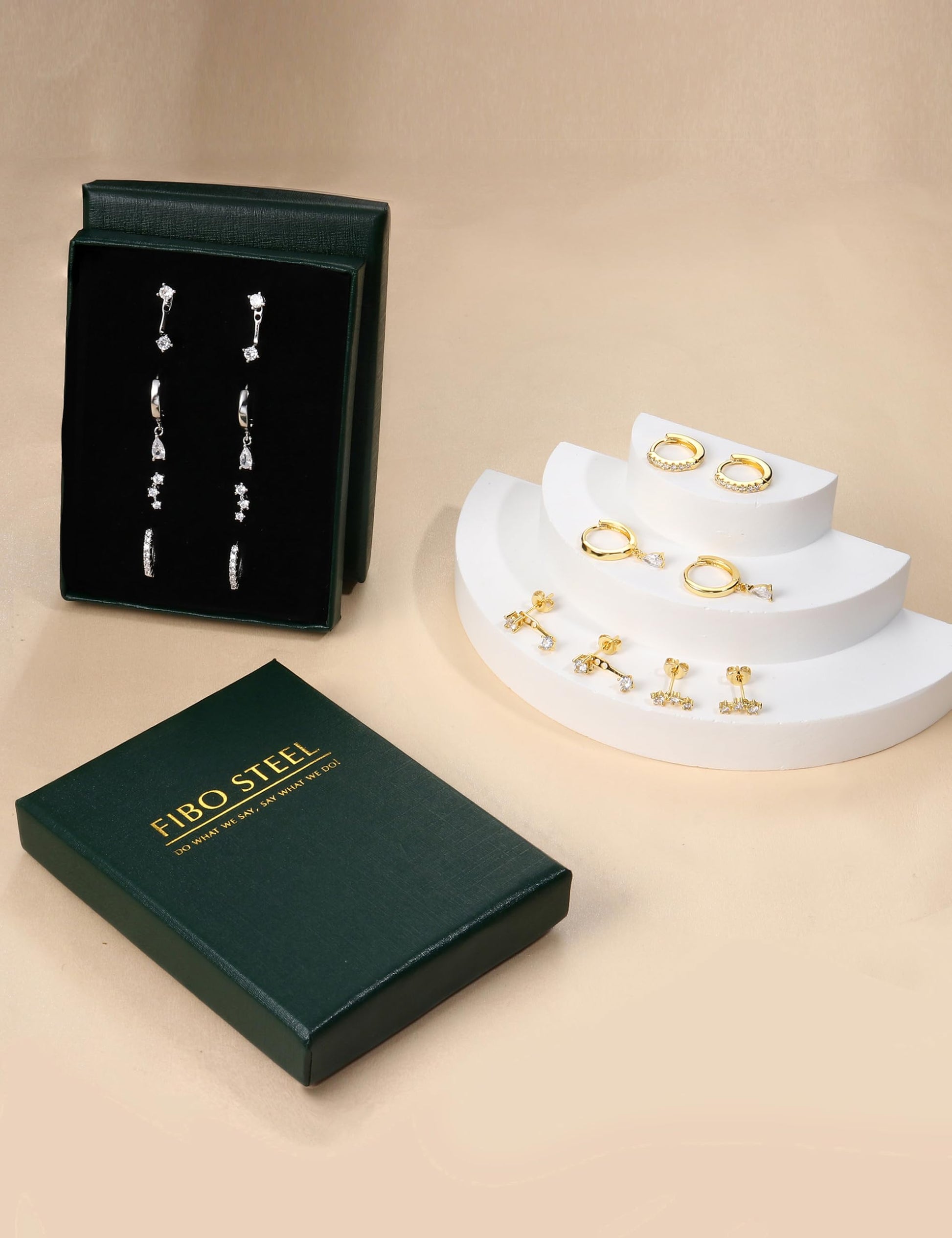 **FIBO STEEL Earrings Sset for Multiple Piercing: Elevate Your Style with Comfort and Elegance** **Why Choose FIBO STEEL?** Our earrings set addresses common buyer pain points by offering a versatile solution for multiple piercings. Whether you're looking for small gold stud earrings for women or comfortable earrings to sleep in, our collection has something for everyone. The dangle earrings stacks add an element of playfulness, while the huggie hoops offer a chic, minimalist vibe. Explore the world of FIBO STEEL today and find your perfect pair!