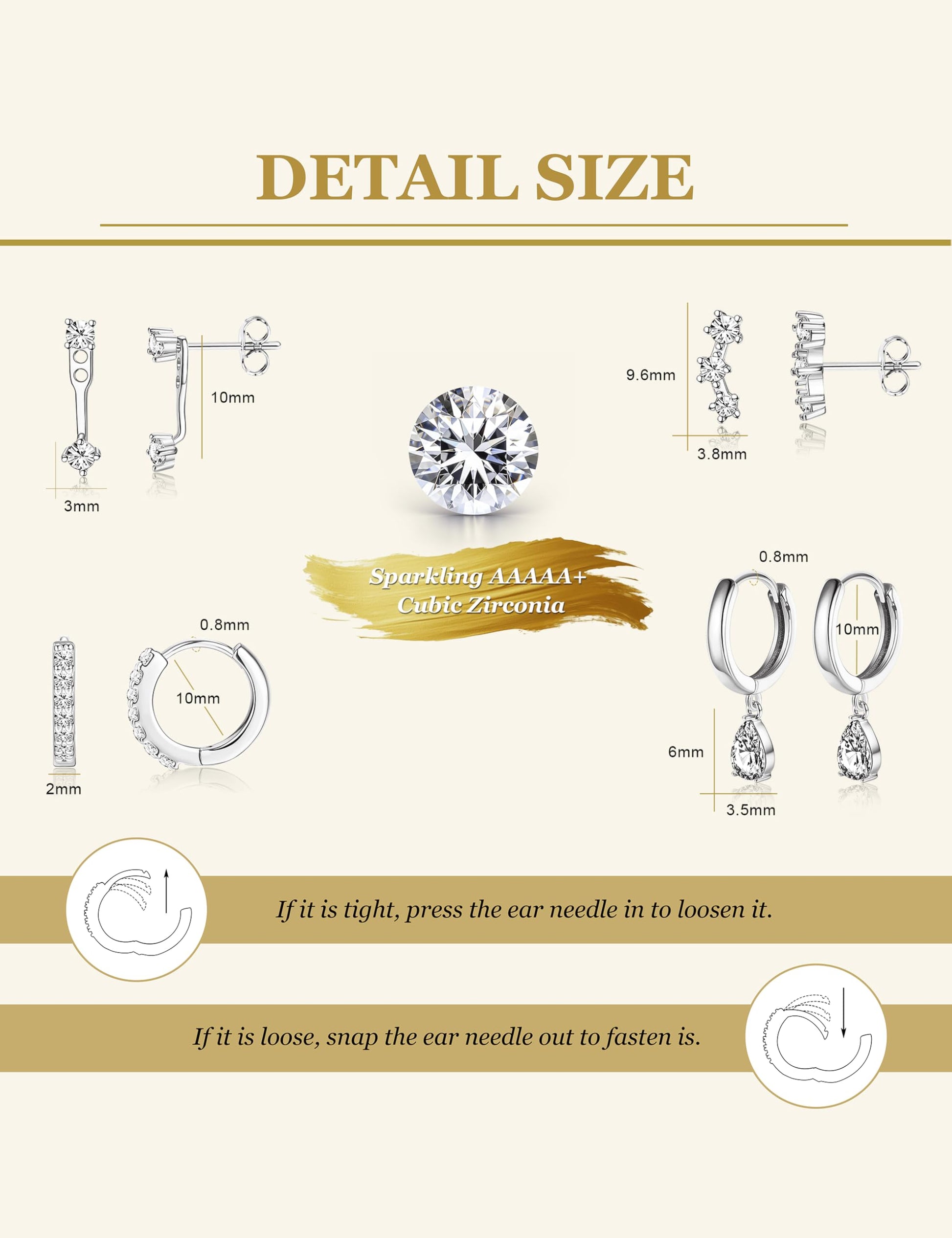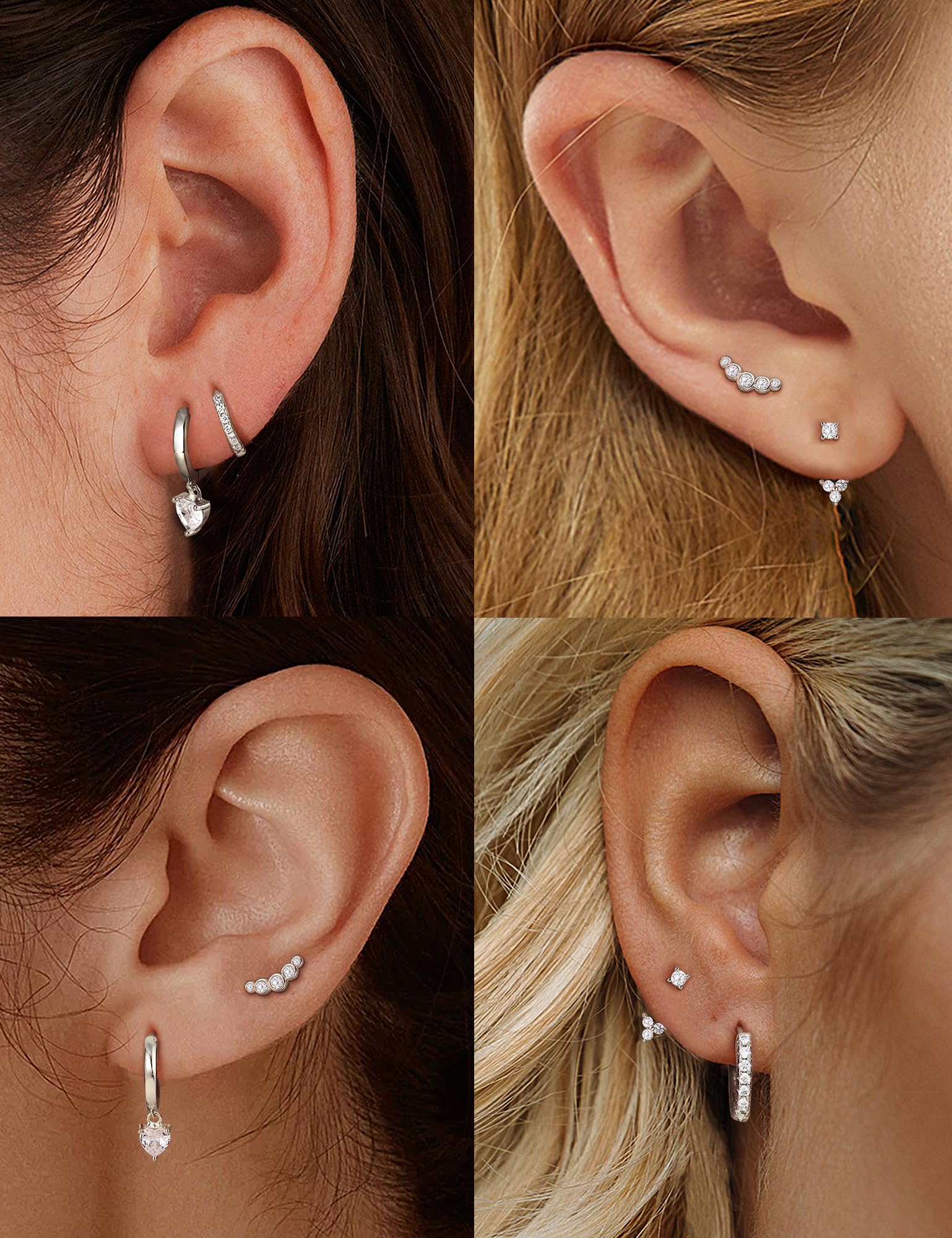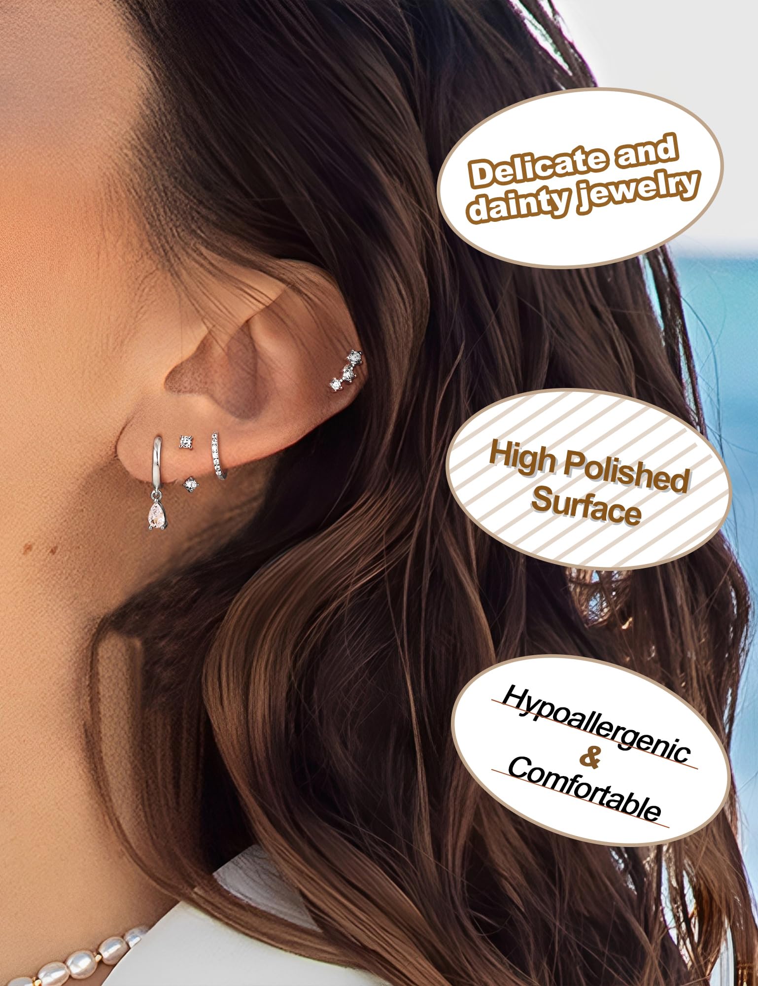 - Versatile Usage--The earrings sets for multiple piercings are simple and practical.Can be used as cartilage earring, conch hoop earring, daith jewelry, helix earrings, rook earrings hoop, tragus hoop piercing para la nariz. Perfect for daily matching,Valentine's Day, Wedding, Mother's Day, Party, Engagement, Classes, Dating, Traveling and so on