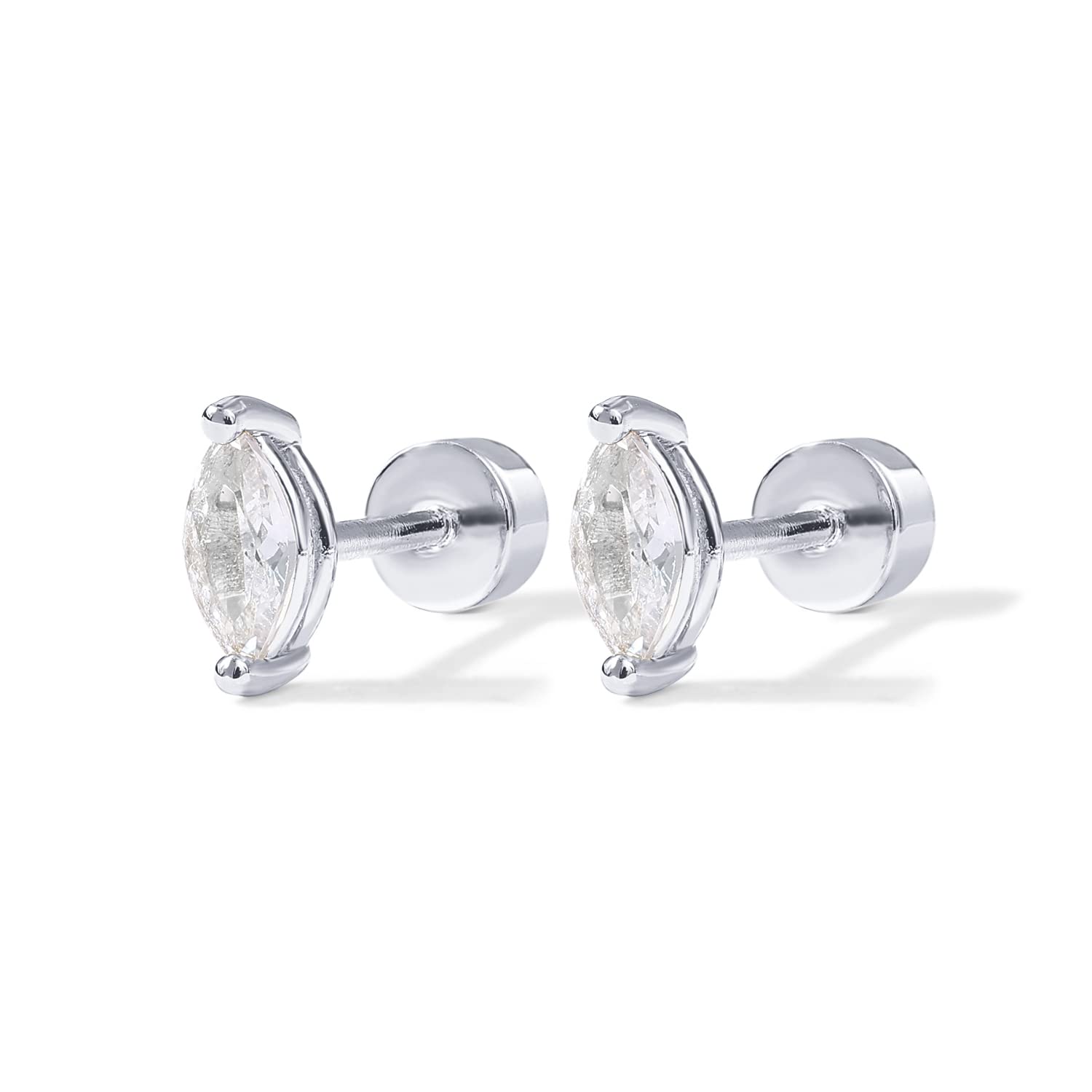 - Dive into a world of elegance with these dainty earrings that shine bright with premium AAAAA navette cubic zirconia. Specifically designed for everyday wear, their flat back ensures utmost comfort, making them perfect for small ears or cartilage piercings. Whether you're going for a casual look or a touch of sophistication, these studs are just what you need.
